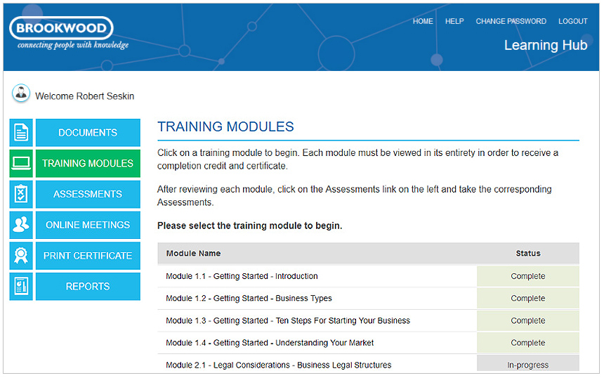 Brookwood’s Learning Hub is mobile-ready and consists of these key components: Documents, Training Modules, Assessment, Certification, Reports.